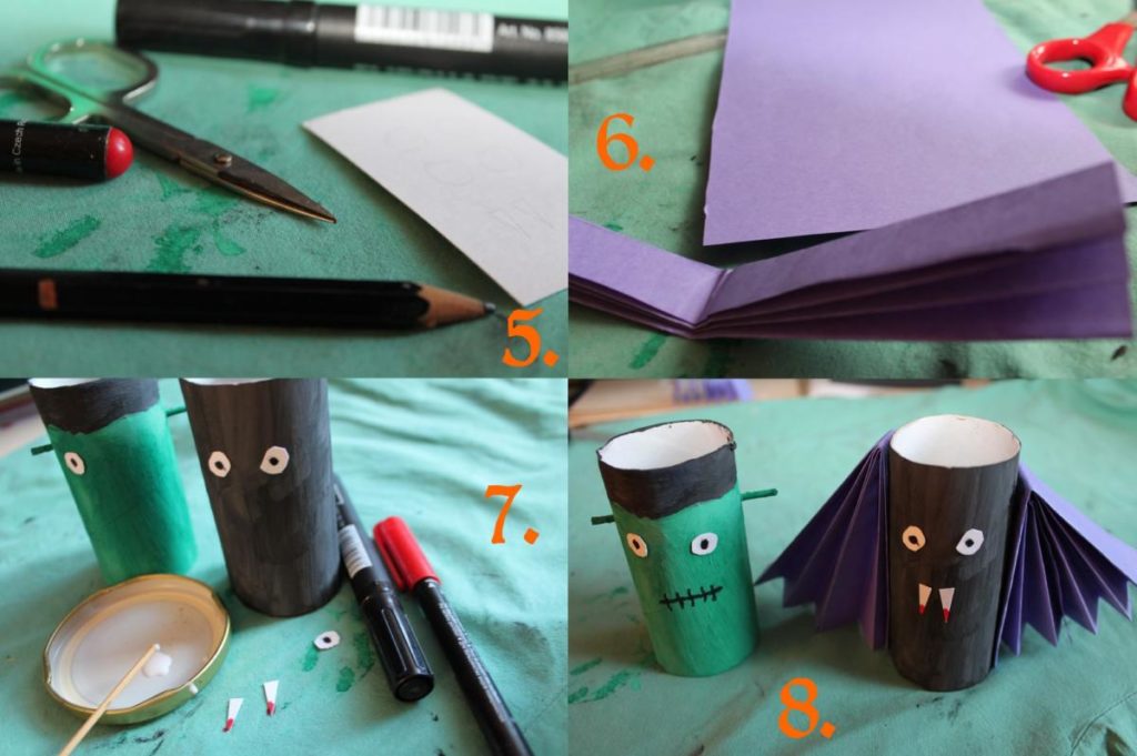 Jednu ruličku namaluj na černo a druhou na zeleno s černým pruhem nahoře.