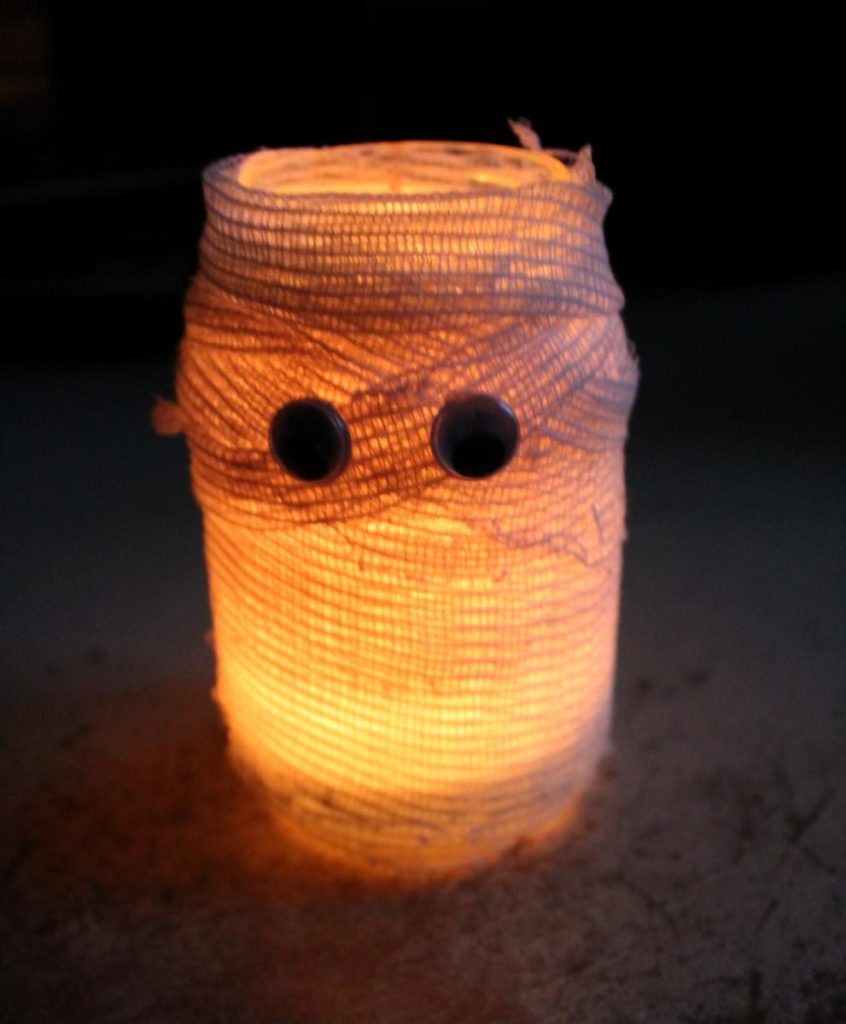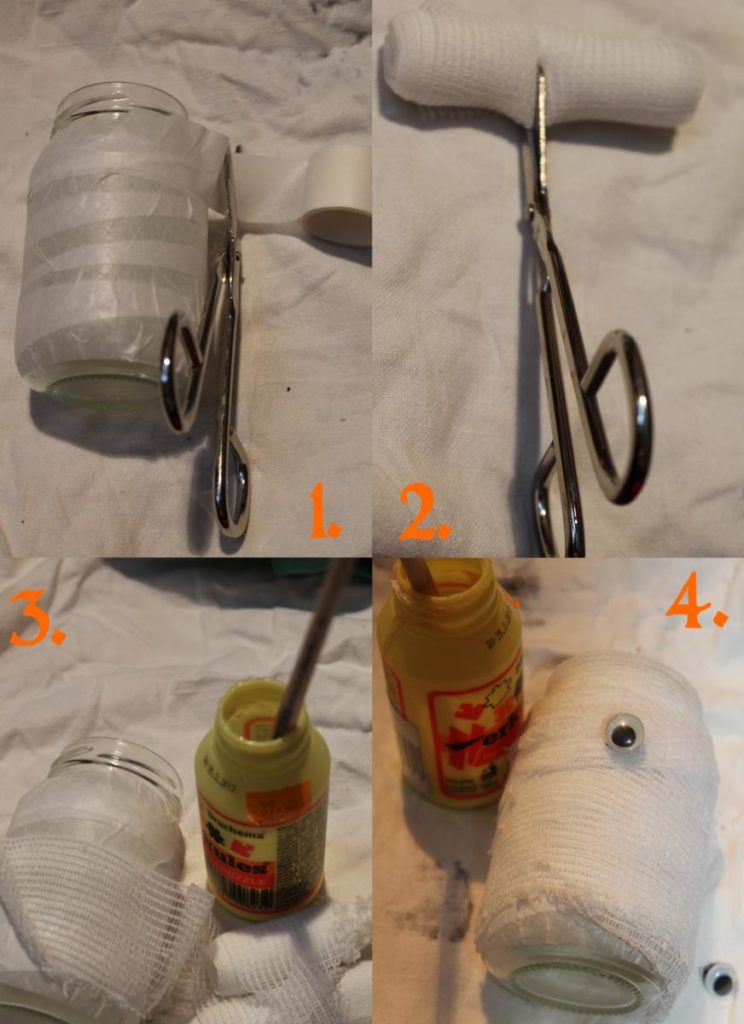 3. Apply glue to the jar and wind bandage around jar.