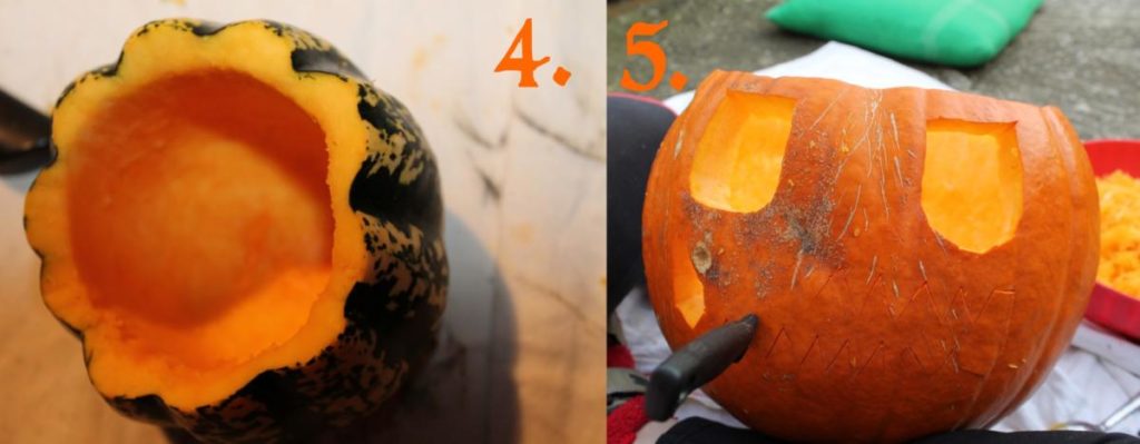 4. Scoop out the pumpkin clean.