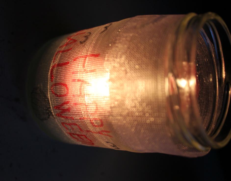 Připrav si: základní vybavení na očištění sklenic, sklenici, fixy, nůžky a lepící pásku.
