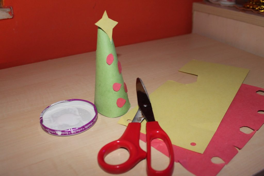 Vytvoř kužel ze zeleného papíru.