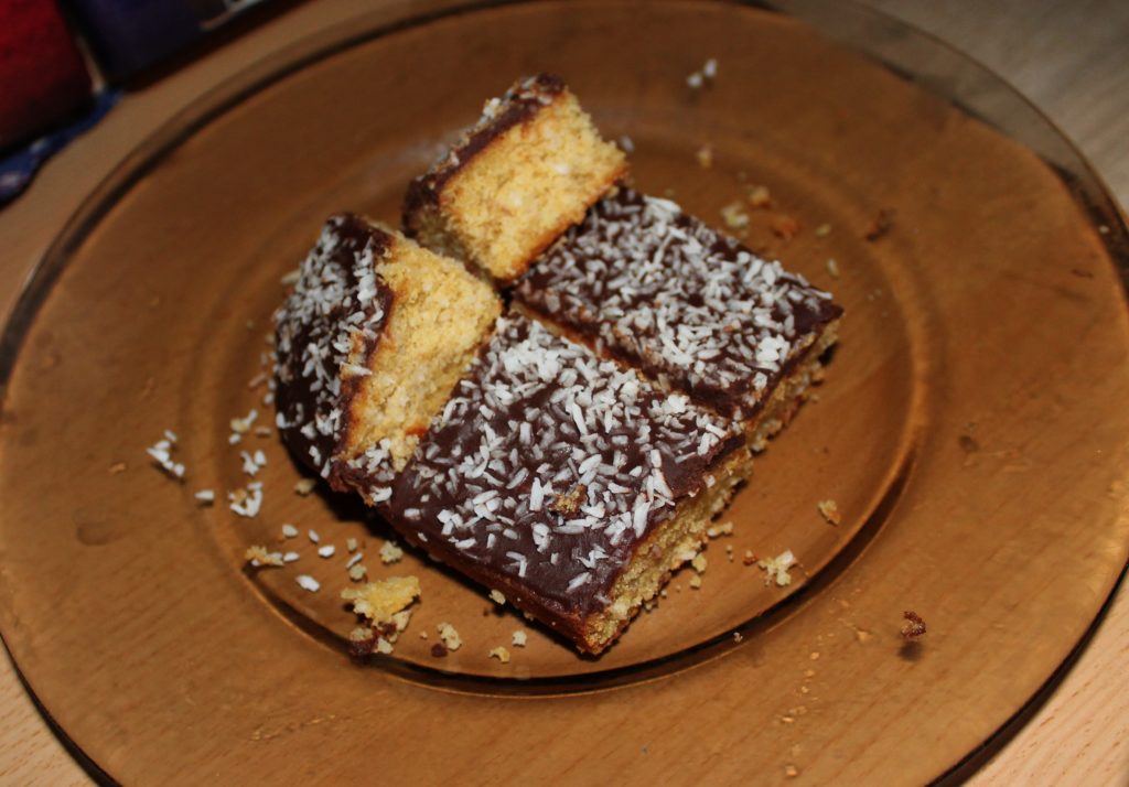 Na kurzech angličtiny, který navštěvuji, každý týden někdo upeče něco sladkého. Tentokrát vyšla řada na mě a já poprvé (s taťkovou pomocí) pekla bezlepkovou a veganskou buchtu. Rozhodli jsme se pro veganskou kokosovo-čokoládovou buchtu. Všem moc chutnala a nikdo z mých spolužáků by ani nepoznal, že byla veganská. Úkol byl teda splněn a protože chutnala i mně, tak jsem neměla problém sníst druhou půlku pekáče!