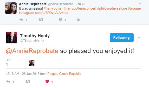 (Jo a taky mi odepsal dirigent Henty na Twitteru! ♥)