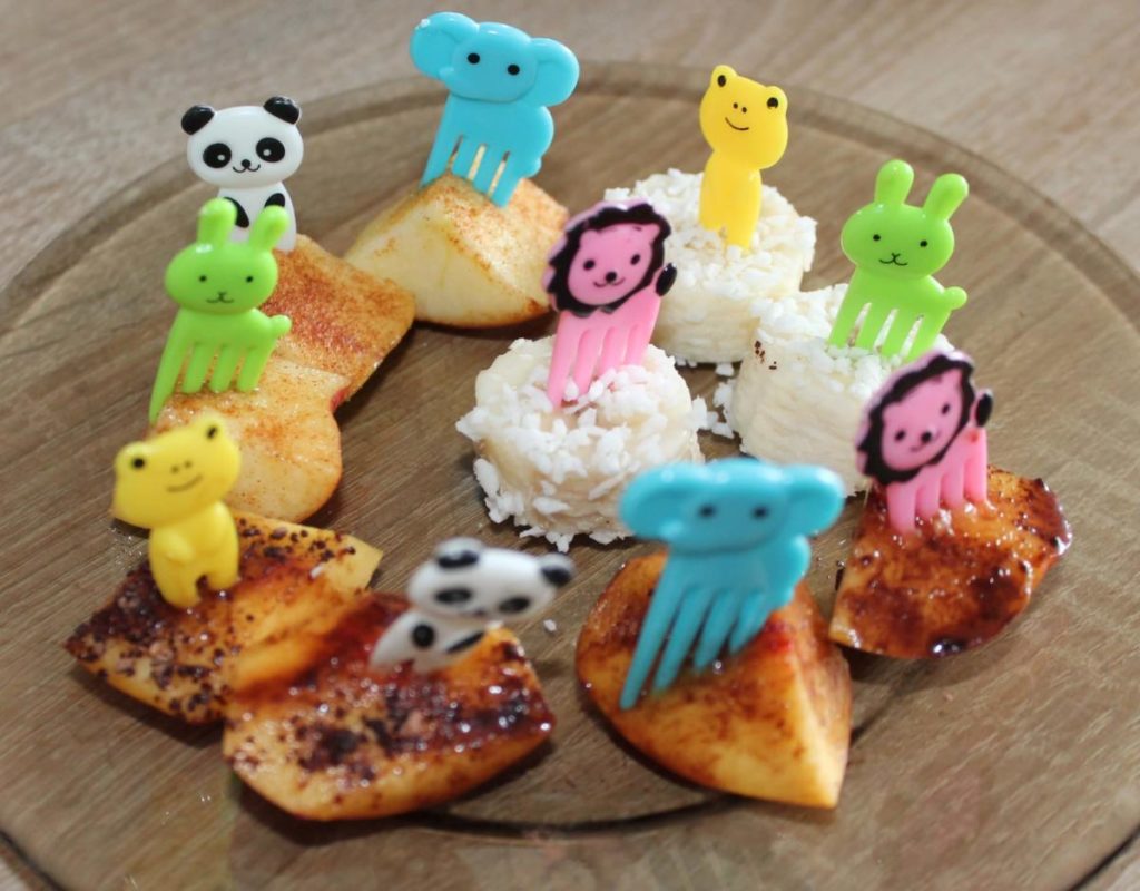 Já měla tentokrát na výběr z několika drobností a vybrala jsem si tyto roztomilé zvířecí napichovátka. Jsou vážně rozkošná a udělaly z mé svačinky talíř plný barev. To co bych jim ale vytkla je to, že mají vcelku krátká napichovátka, takže vyšší sousto už by asi neudržely. Z praktické stránky nic moc, ale jako ozdoba jsou perfektní (a věřím, že děti by byly také nadšené). Zvířátka jsou z umělé hmoty, ale pevné, takže se jen tak nezlomí. Koupit je můžete zde za 75,-Kč a udělat si také zábavnou svačinku.