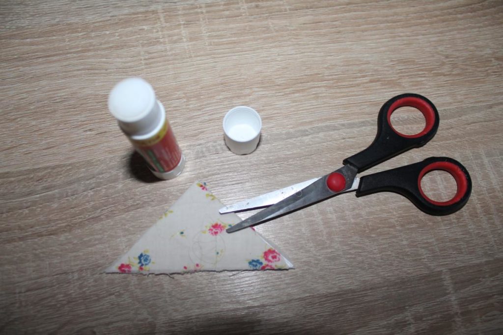 Připrav si: Čtvrtku, nůžky, obyčejnou tužku, kus látky a lepidlo.
