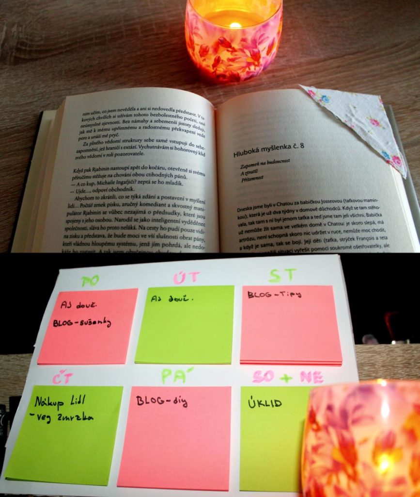 Přemýšlela jsem nad tím, co by se mi hodilo při nástupu do nové práce a některým z mých čtenářů při návratu do školy. Já budu pracovat hodně z domova, a proto jsem potřebovala viditelnou nástěnku s úkoly, co ten týden potřebuju splnit. Nechtěla jsem si vše psát do diáře, protože tam si spíš zapisuji schůzky a podobné věci a hlavně ho musím pořád otvírat. Nástěnka s odstranitelnými lístečky byla lepší variantou. Kupovat ji nemělo cenu a tak jsem se pustila do malého vlastnoručního projektu. Další věcí, kterou jsem nutně potřebovala byla záložka – do knihy, papírů či diáře. DIY zpátky do školy/práce bylo řešením, které mi v tu chvíli přišlo nejlepší. Přináším vám tedy návod jak na to, protože myslím, že se mi to docela povedlo a bylo to hotové za pár minut. A hlavně to splnilo svůj účel!