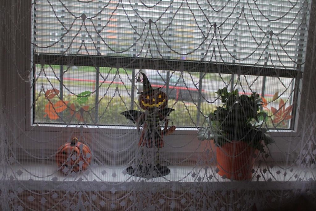 Kuchyň je docela malá a není tam moc místa na dekorace, proto toho je nejvíc na okně. Svíčka (s dýňovou vůní) a postavička dýně mi byla zaslána na recenzi. Brzy se ji dočkáte. Zatím vám musí stačit to, že svíčky mám často zapálenou. A ano, dýně je vidět z ulice!