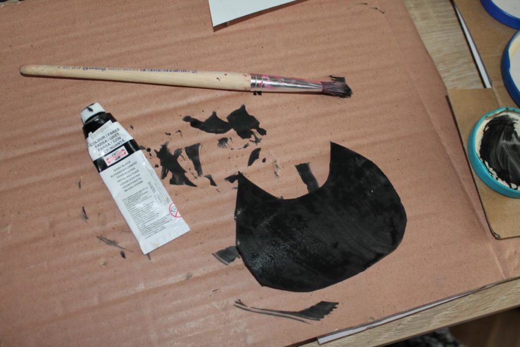 2. Vystřiženou hlavu natřeme na černo a prostřihneme očka.