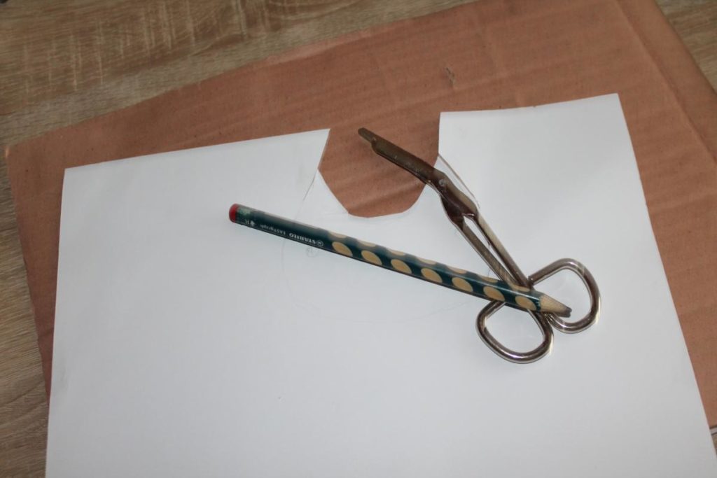 1. Na čtvrtku si načtrneme hlavu kočky a vystřihneme ji.