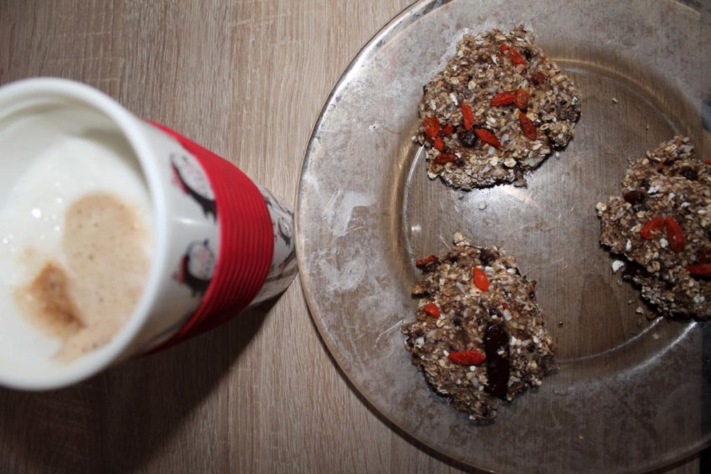 Sojové latté s ovesnými placičkami.