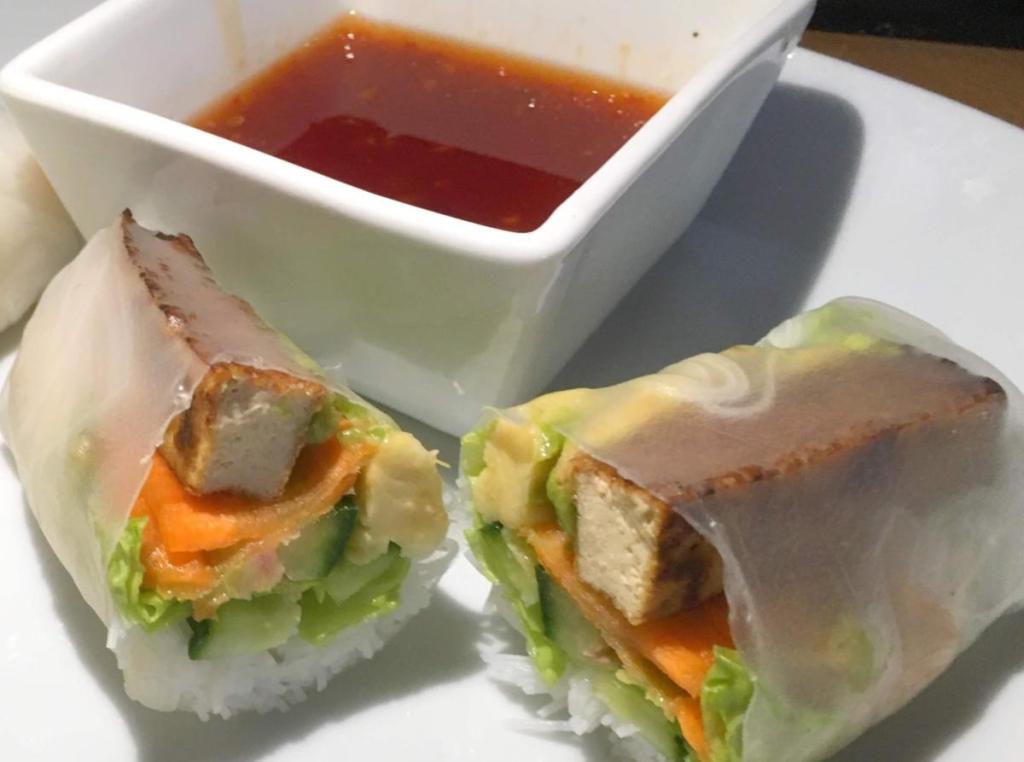 Nakrájíme si zvlášť všechnu zeleninu. Tofu nakrájíme na tyčinky, opepříme, osolíme a na pánvičce osmahneme do zlatova – pak necháme vychladnout. Uvaříme si nudle podle návodu, pak je propláchneme ve studené vodě, ať se dál nevaří a necháme odkapat. Vezmeme si velkou mísu s vodou, namočíme rýžový papír a položíme ho na pult na čistou utěrku. Následně na něj dáme trochu nudlí, jednu tyčku tofu a přiměřené množství zeleniny. Následně zabalíme a pokračujeme s dalším závitkem. Podáváme se sojovou a chilli omáčkou (namícháno 50/50).